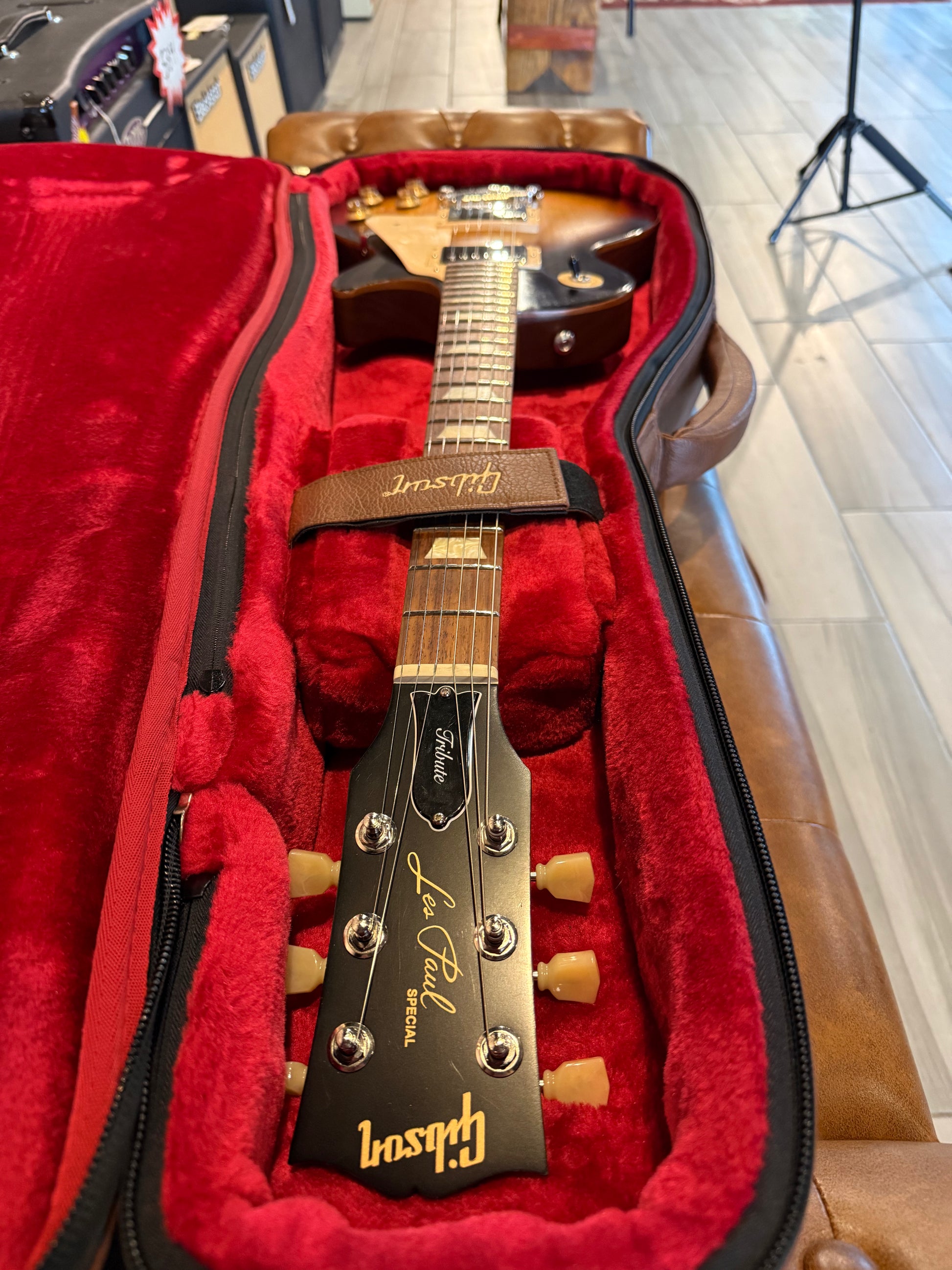 Used 2019 Gibson Les Paul Tribute Satin Tobacco Burst with original gig bag. A few minor light scratching on back. See pics for details. Guitar has been professionally setup in house with 10's with standard Gibson factory specs. Feels, plays and looks amazing! Its a Gibson. Curb weight: 8.2 lbs
